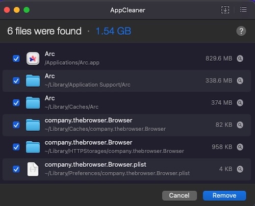 - AppCleanerが関連ファイルをリストアップする