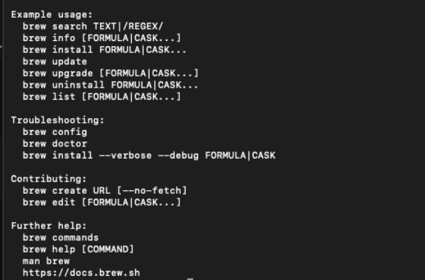 - brew help