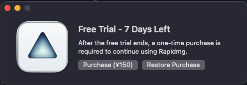 RapidmgはMac App Storeで無料ダウンロードできますが、試用期間は1週間。その後も継続利用する場合は、約1ドル(150円程度)の買い切り課金が必要です。