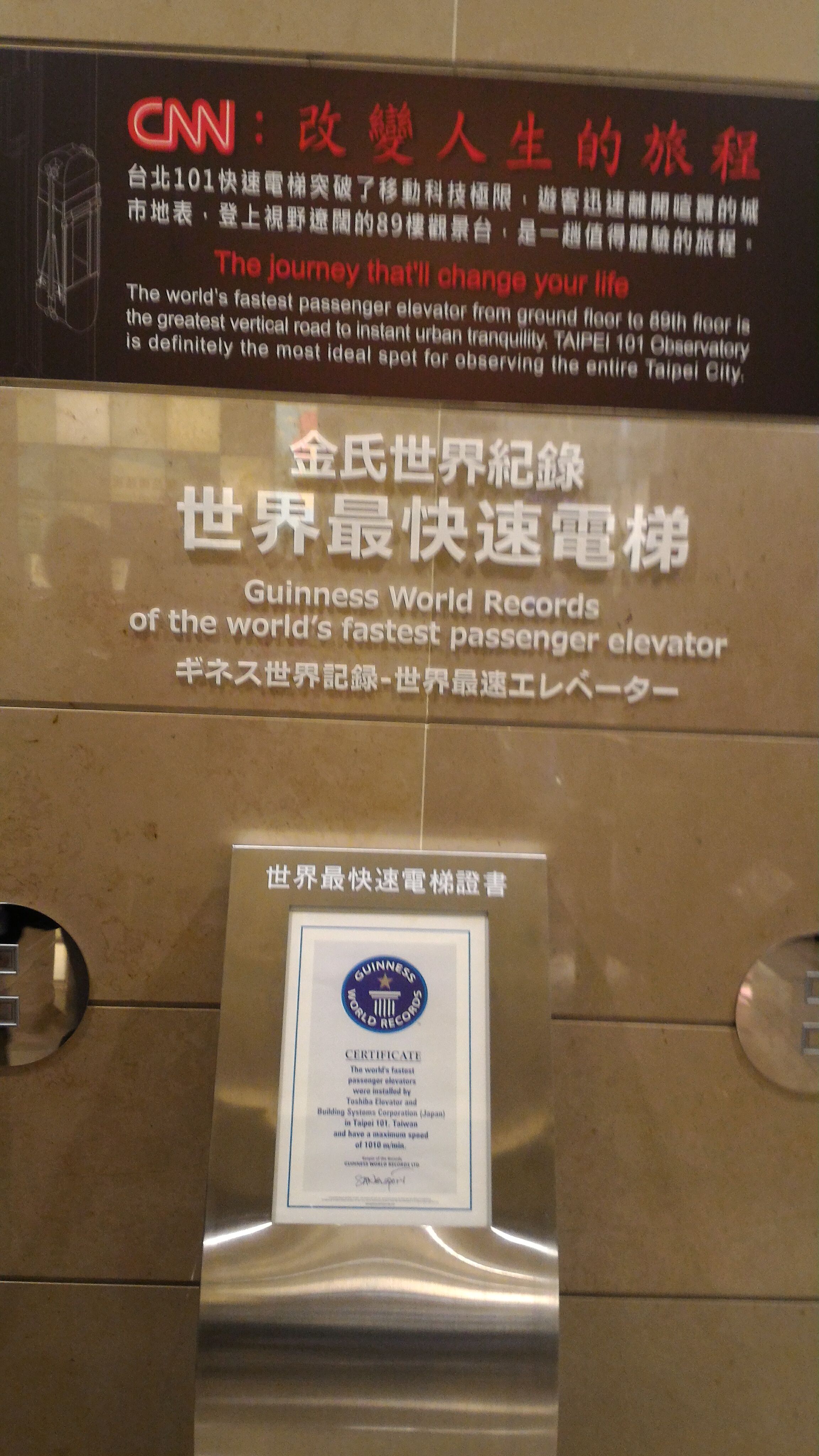 台北101 エレベーター速度ギネス世界記録