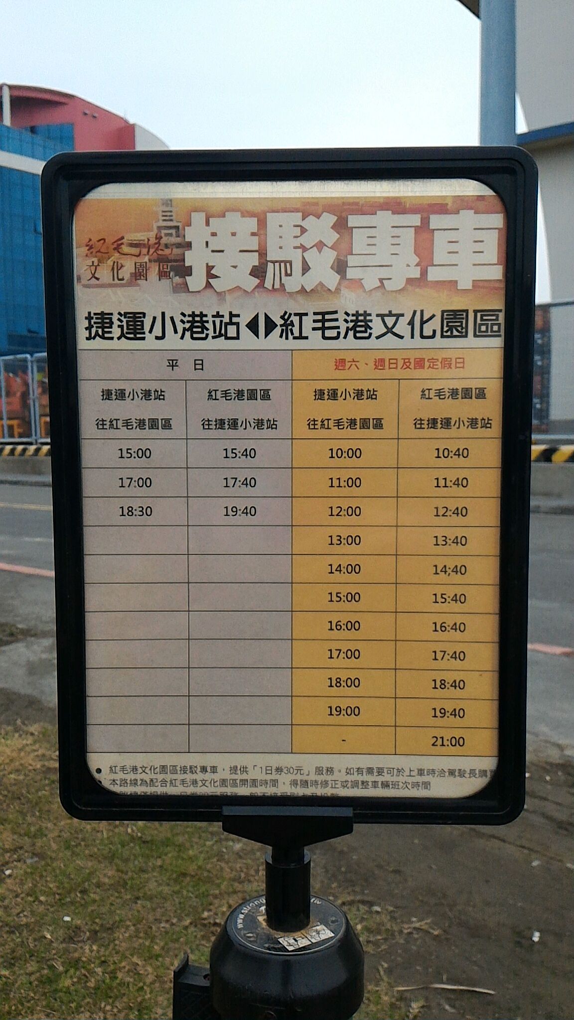 紅毛港文化公園シャトルバス時刻表