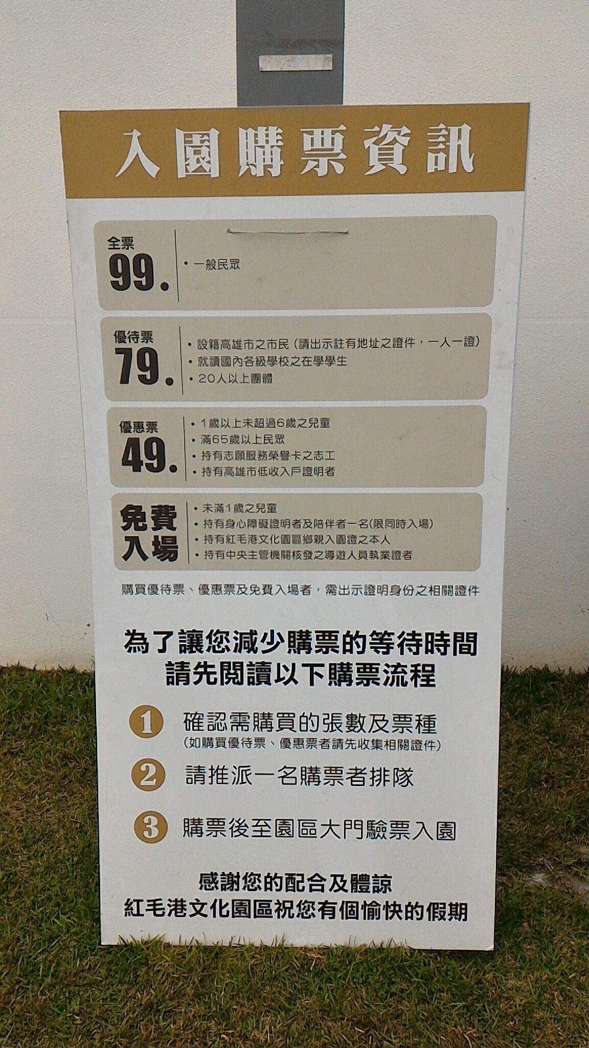 紅毛港文化公園料金表